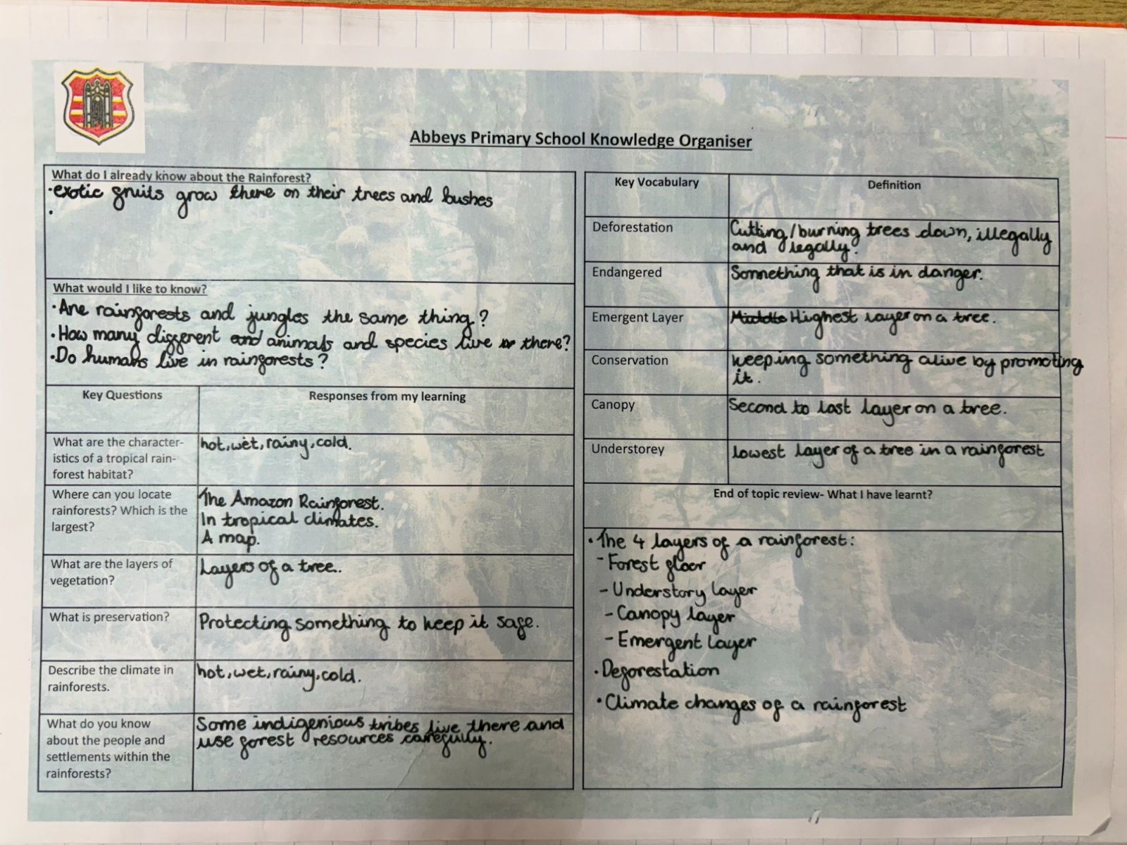 This album contains examples of some of the children's work in History and Geography