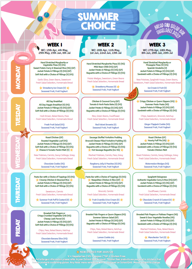 Summer Term Menu (April - July 2026)