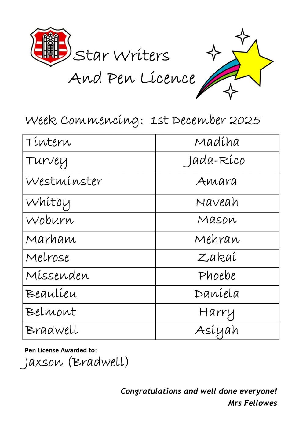 Abbeys Primary School always like to recognise the children's achievements whether they are academic or personal. Each Friday Assembly is our opportunity to share these achievements as a whole school and the children who are 'Abbeys A Stars' that week are rewarded with a book of their choice from the wonderful selection on display. Each week we recognise our 'Star Writers' and their achievements are rewarded with a special 'writers' pencil.