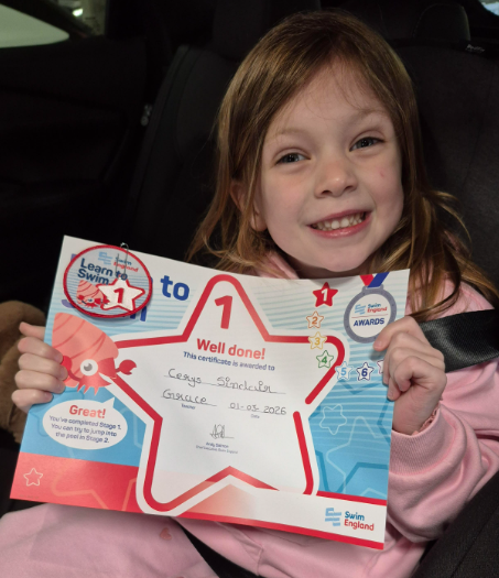 Congratulations to Cerys! She has achieved her Stage 1 swimming award!