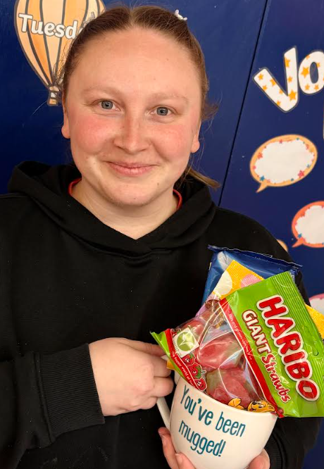 Mrs Moir MUGGED Mrs Clarke as a small token of appreciation. She said she consistently goes out of her way to support others, whether children or adults, and is a truly valued team player.