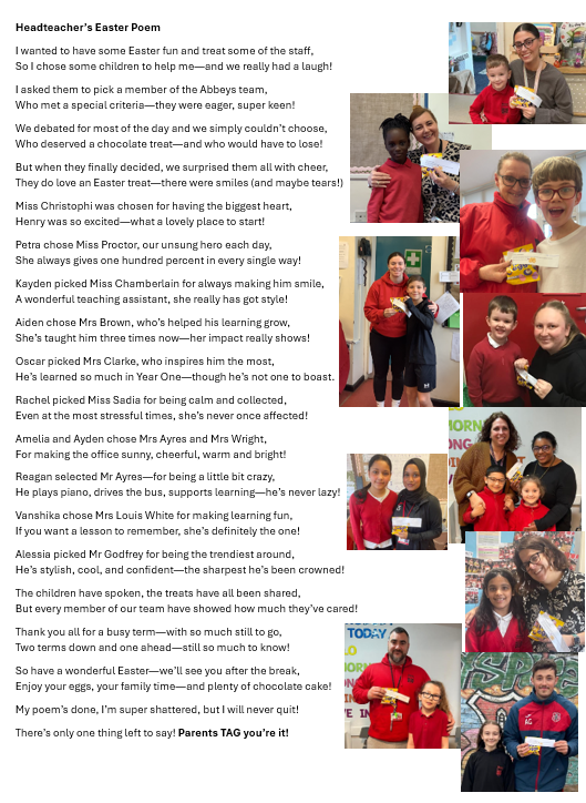 We have had a memorable term and the children have enjoyed it so much. I hope that they have a lovely rest over Easter and come back raring to go on Monday 13th April.